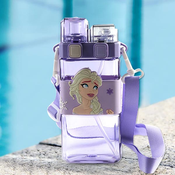 Cartoon Water Bottle Leak Proof with two Sipping Straws, Silicon Cartoon Label and Nylon Fabric Hanging Strap. The cartoon water bottle is anthropomorphic; this cartoon water bottle is sure to bring a smile to anyone’s face.